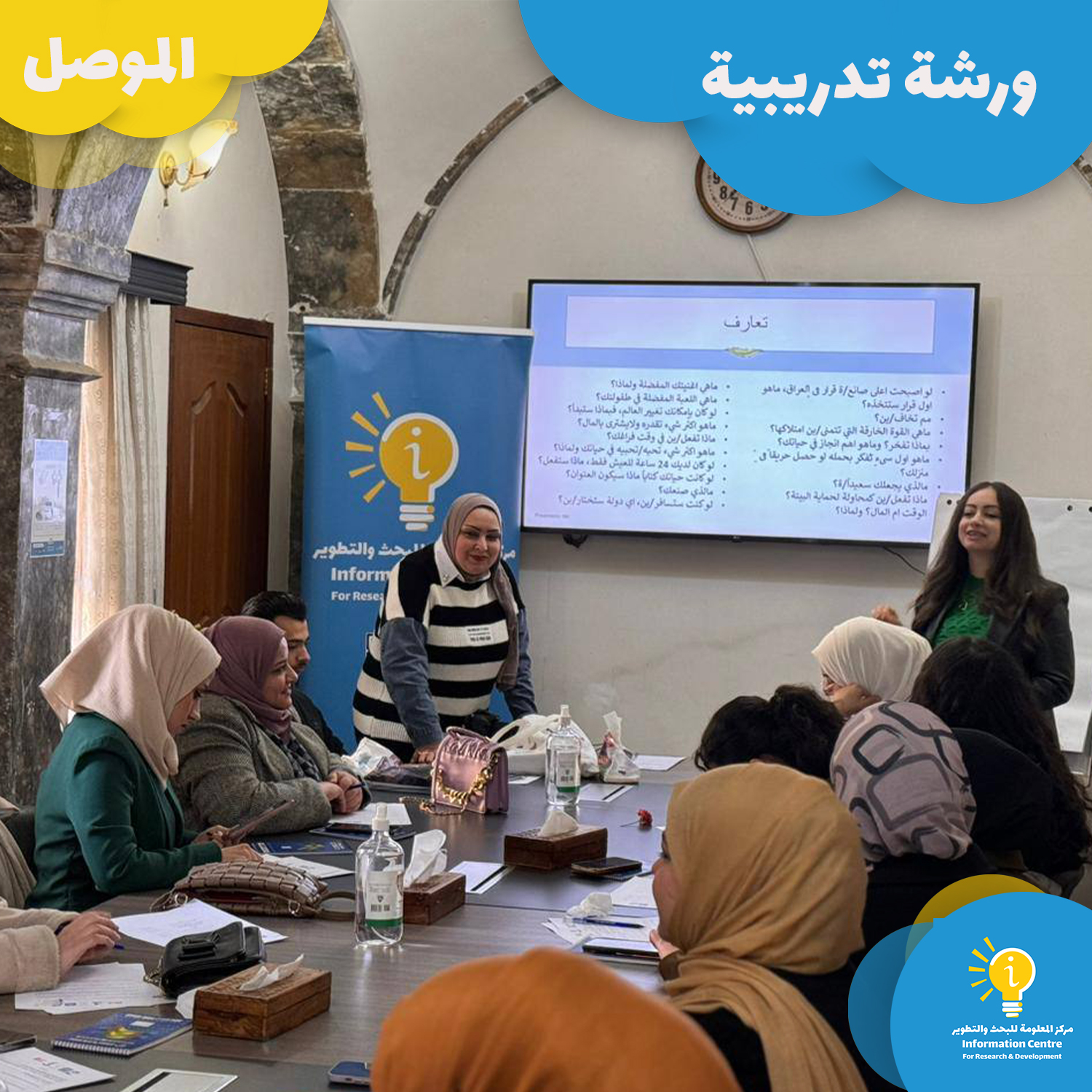 أقام مركز المعلومة للبحث والتطوير ورشة تدريبية حول " دور النساء والفتيات في بناء السلام " في مدينة نينوى لمدة يومين ،وذلك خلال 2-3 شباط 2024 ، بحضور مجموعة من الناشطات/ين ومتطوعات فريقنا النسوي ،بإشراف المدربة ريم غسان .