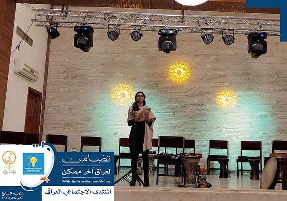 جانب من انطلاق فعاليات الموسم السابع للمنتدى الاجتماعي العراقي الذي حمل شعار " تضامن لعراق اخر ممكن ".