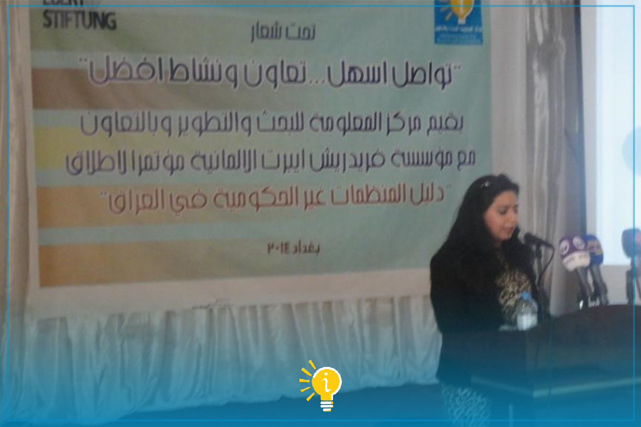 بحضور حشد من النشطاء المدنيين المحلين والدوليين، فضلا عن وسائل الاعلام، عقد مركز المعلومة للبحث والتطوير، مؤتمرا لأطلاق "دليل المنظمات غير الحكومية في العراق"، وبالتعاون مع مؤسسة فريدريش ايبرت الالمانية وذلك يوم السبت المصادف 8 شباط 2014 وعلى قاعدة فندق بغداد في شارع السعدون وسط العاصمة.