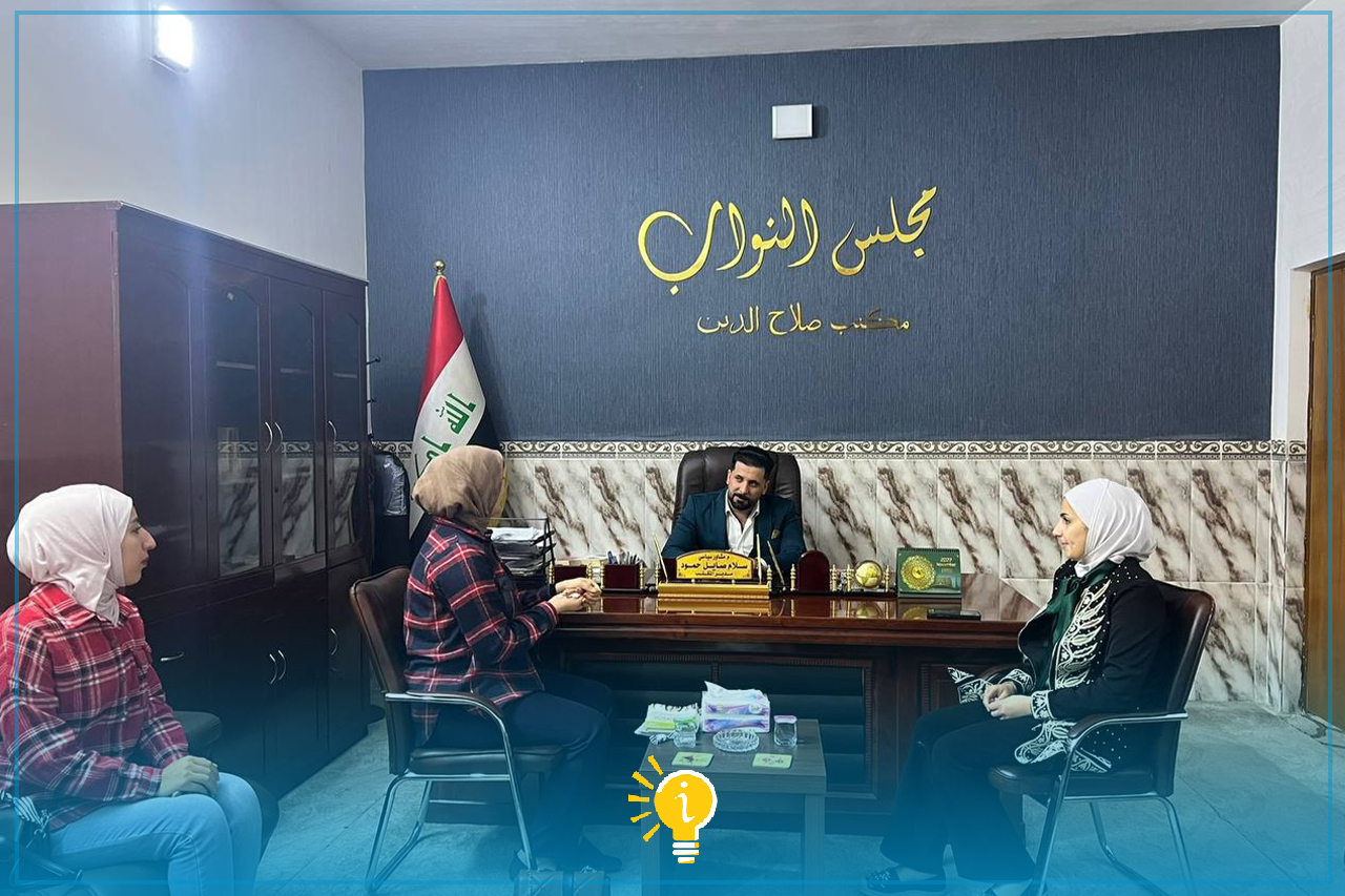 التقت الزميلة هاجر محمد منسقة صلاح الدين ،بالسيد سلام صايل مدير مكتب مجلس النواب ، والسيدة اسراء العزاوي مسؤولة وحدة تمكين المرأة /دائرة الهجرة والمهاجرين ، والسيد ادريس المطرود مدير المفوضية العليا لحقوق الإنسان في مدينة صلاح الدين ، وذلك خلال شهر كانون الثاني 2023 ، وجرى الحديث عن مركزنا ونشاطاته المتنوعة ومشروع " الثورة انثى " الذي ينفذه المركز في خمس محافظات ( بغداد ، البصرة ، الموصل ، صلاح الدين ، الانبار ) بدعم من منظمة جسر الى الايطالية ، هدفت هذه الاجتماعات الى تعزيز العلاقات وسبل التعاون في الأنشطة والفعاليات القادمة . وفي ختام تم الاتفاق على الدعم والتنسيق المتبادل بين الطرفين .
